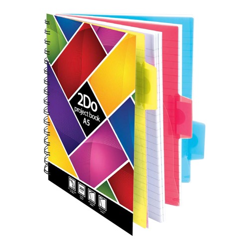 Špirálový blok linajkový A5 s tromi pohyblivými rozraďovačmi; jednotlivé listy sú dierované a perforované. Dizajn: Wave, 100 listov/200 strán, 80g/m2.