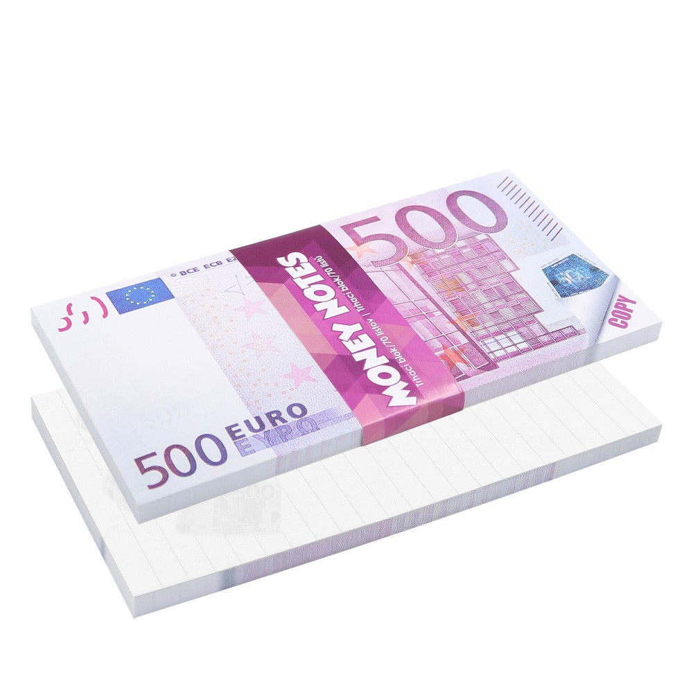 Trhací blok s potlačou 100 € , zo zadnej strany riadkovaný blok. Money notes obsahuje 70 listov, takže za 2 eurá budeme mať až "7000" €. A to sa veru oplatí. Múdre hlavy tvrdia, že ak si odtrhnete pár bločkov a dáte ich do peňaženky, tak vám to prinesie šťastie a bohatstvo.