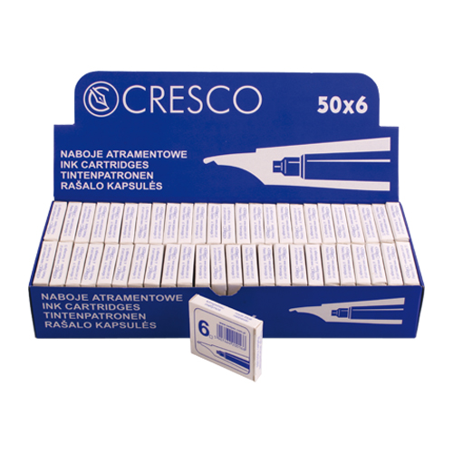 Náhradné bombičky do atramentových pier, s modrým atramentom, balené po 6 ks v krabičke.