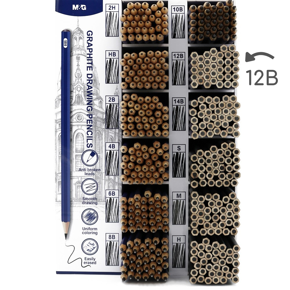 6 hranná grafitová ceruzka pre hladké kresby. Tvrdosť: 12 B