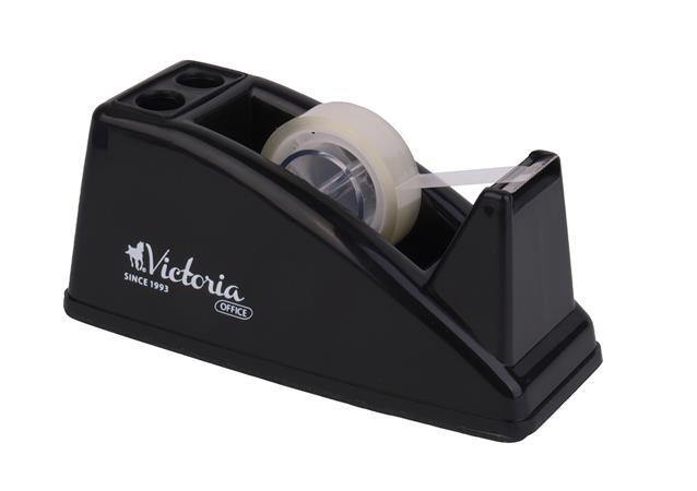 Čierny dispenzor Victoria je ideálnou voľbou. Napriek svojim kompaktným rozmerom je pomerne ťažký, čo mu zaručuje dostatočnú stabilitu, aby ste mohli jednou rukou pohodlne odtrhnúť požadovaný kus pásky. Vďaka zúbkovanému reznému ostriu pásku jednoducho a presne odtrhnete bez posunutia či pohybu dávkovača. Je vhodný pre lepiace pásky so šírkou 19 alebo 25 mm. Dodáva sa bez lepiacej pásky.