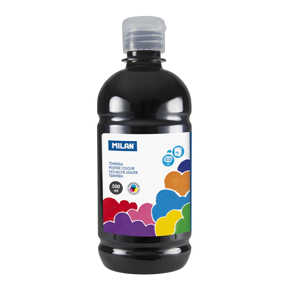 Kvalitné temperové farby, vďaka optimálnej textúre pripravené na okamžité použitie, ktoré ale napriek tomu môžu byť v prípade potreby riedené vodou. Vďaka svojmu dokonalému zloženiu kvalitných syntetických pigmentov sú tieto farby svetlostále a majú čisté, jasné odtiene. Vyznačujú sa vynikajúcou krycou schopnosťou. Ekonomické, rýchloschnúce, vyprateľné z väčšiny textílií. Balené v transparentnej fľaši po 500ml, so špeciálnou bezpečnostnou skrutkou a aplikátorom. Farba: čierna.
