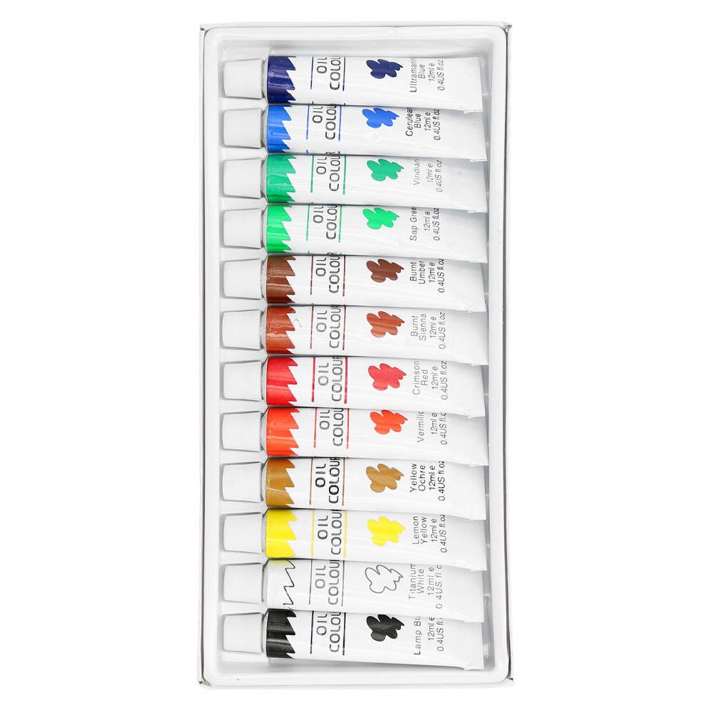 Olejové farby v jasných odtieňoch, s hustou konzistenciou a veľmi dobrou krycou schopnosťou. Farby sa dajú použiť priamým vytlačením z tuby a možno ich aplikovať na všetky bežné olejové podklady. Sada obsahuje 12 farebných odtieňov v tubách o objeme 12ml, uložených v papierovej krabičke. Kvalitné, cenovo dostupné farby, ktoré firma JUNIOR ponúka pod vlastnou značkou. Rozmer balenia: 10,5×25 cm.
