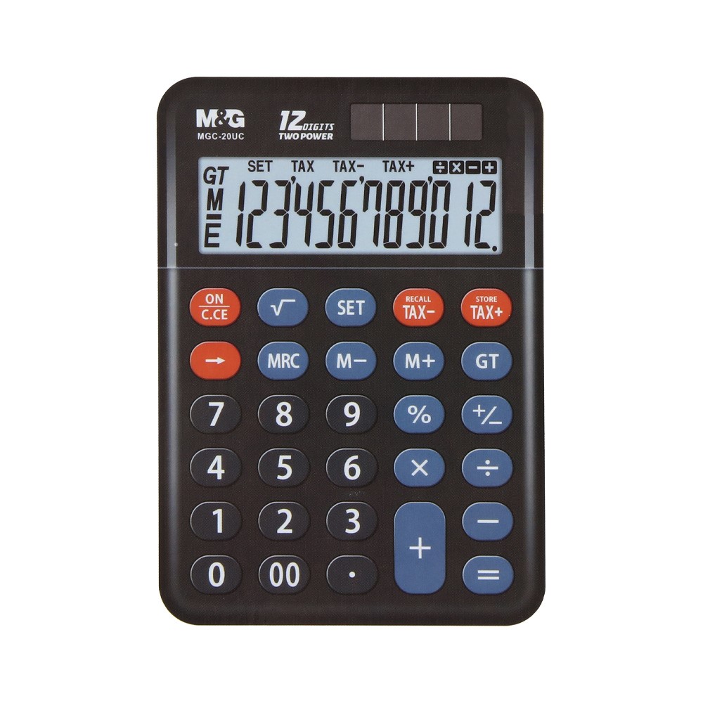 Stolná kalkulačka s veľkým, ľahko čitateľným 12 ciferným LCD displejom v čiernej farbe.