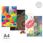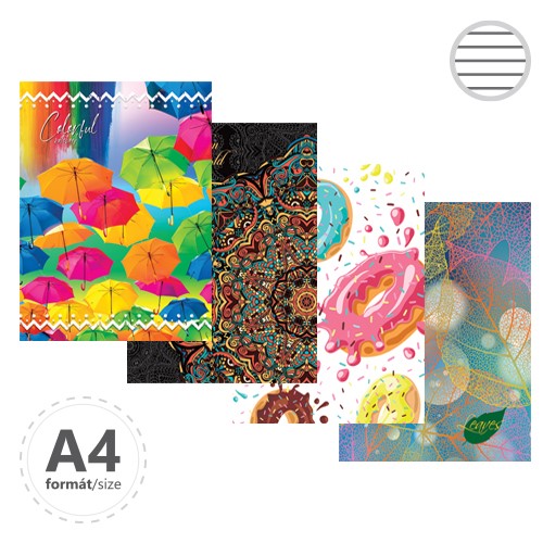 Záznamové knihy A4 sú vyrobené z bezdrevného písacieho papiera. Obálka je vyrobená z tvrdého kartóna, ktorý je potlačený rôznymi farebnými motívmi a potiahnutý laminom. Linajková - 192 listov.
