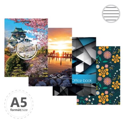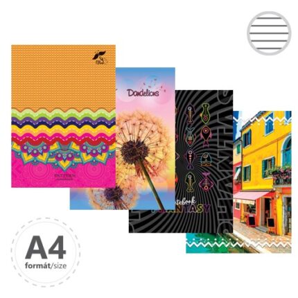 Záznamové knihy A4 sú vyrobené z bezdrevného písacieho papiera. Obálka je vyrobená z tvrdého kartóna, ktorý je potlačený rôznymi farebnými motívmi a potiahnutý laminom. Linajková - 192 listov.