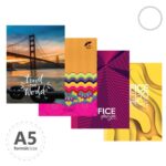 Záznamové knihy A5 sú vyrobené z bezdrevného písacieho papiera. Obálka je vyrobená z tvrdého kartóna, ktorý je potlačený rôznymi farebnými motívmi a potiahnutý laminom. (8 dizajnov). Čistá – 96 listová.