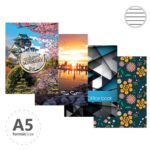 Záznamové knihy A5 sú vyrobené z bezdrevného písacieho papiera. Kniha má lepeno- šitú väzbu. Obálka je vyrobená z tvrdého kartóna, ktorý je potlačený rôznymi farebnými motívmi a potiahnutý laminom. Linajková - 144 listov.