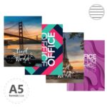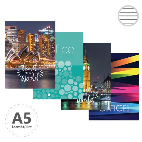 Záznamové knihy A5 sú vyrobené z bezdrevného písacieho papiera. Obálka je vyrobená z tvrdého kartóna, ktorý je potlačený rôznymi farebnými motívmi a potiahnutý laminom. (8 dizajnov). Čistá - 96 listová.