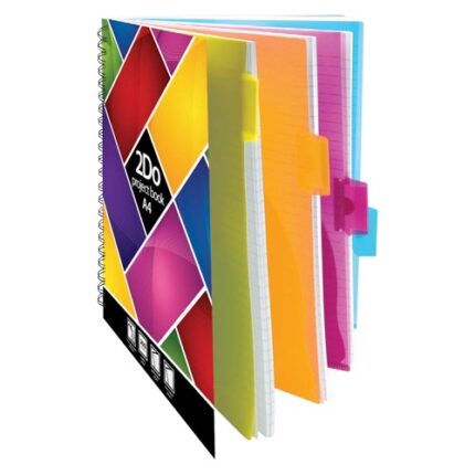 Špirálový blok linajkový A4 s piatimi pohyblivými rozraďovačmi; jednotlivé listy sú dierované a perforované. Dizajn: Wave, 100 listov, 80g/m2.