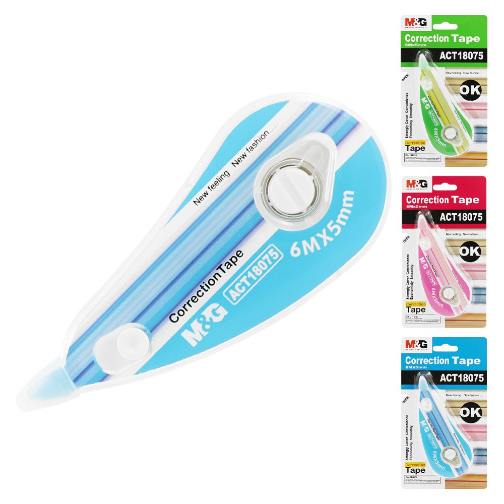 Korekčný strojček s aplikačným hrotom, umožňujúcim pohodlné a čisté nanášanie suchého korekčného filmu, šírka pásky 5 mm, návin 6 m, dodávaný na blistri.