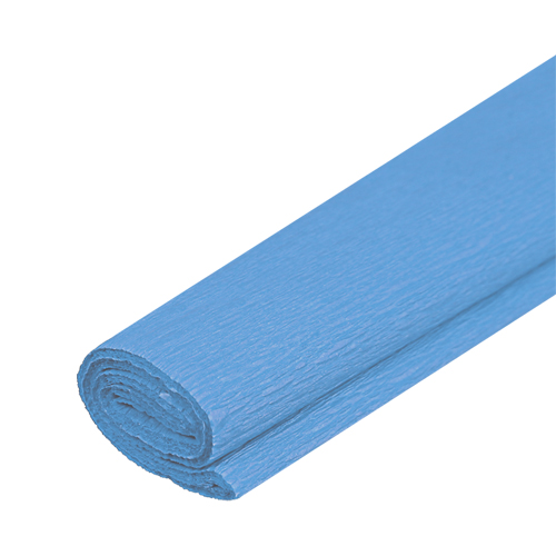 Krepový papier, dodávaný v návine, rozmer 50 x 200 cm, farba svetlo modrá. Má široké použitie pre školské, výtvarné a aranžérske práce.