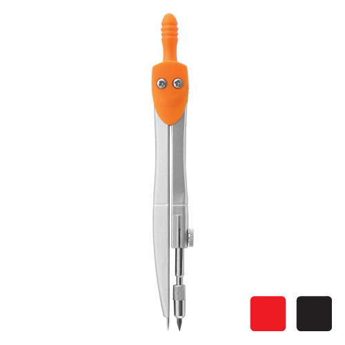 Jednoduché školské kružidlo s pevným kovovým telom a plastovým úchytom v 3 farebných prevedeniach v plastovom obale.