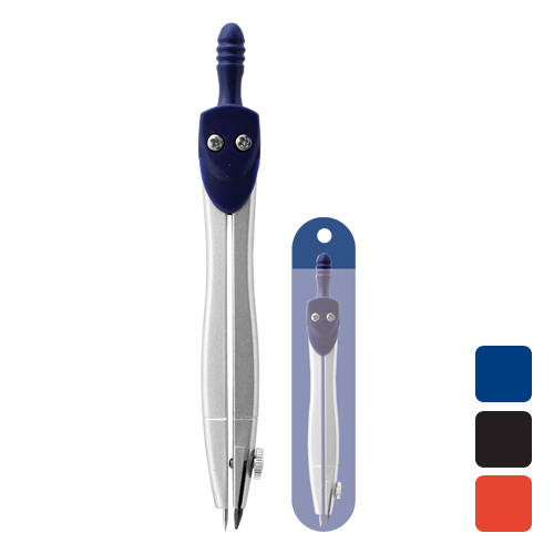 Školské kovové kružidlo s plastovým úchytom v 4 farebných prevedeniach. Balené v plastovej krabičke alebo v plastovom obale.