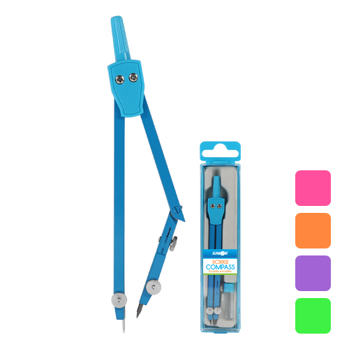 Školské kovové kružidlo s ohybným ramenom, plastovým úchytom. Súčasťou balenia je náhradná tuha. Celý set je balený v praktickej plastovej krabičke. Kružidlo dodávané v piatich pastelových farbách.