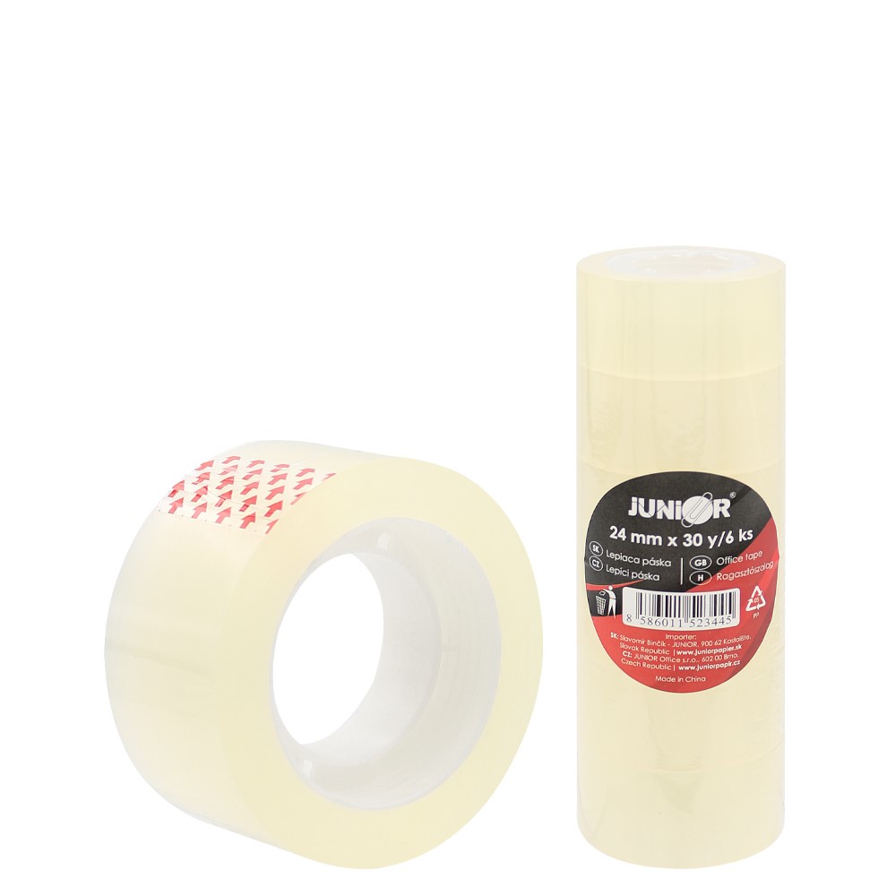 Priesvitná lepiaca páska stĺpovito balená, šírka pásky 24 mm, návin 20 m, vhodná na bežné použitie.