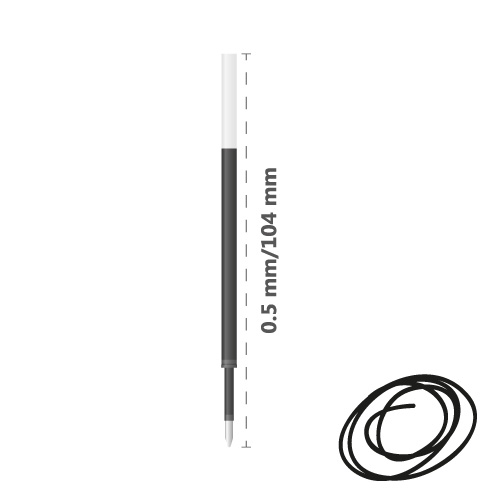 Náplň do gélového pera, priemer guľôčky 0,5 mm, farba čierna. Dĺžka: 104 mm.