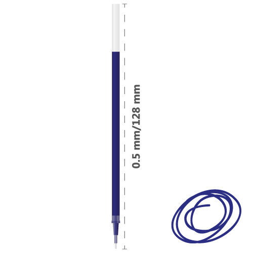 Gélová náplň do pera, modrá farba, dĺžka 128 mm, priemer guľôčky 0,5 mm.