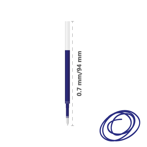 Originál gélová náplň modrej farby do pera MILAN GEL Touch so šírkou stopy 0,7 mm. Atrament vyrobený v japonsku zaručuje trvácnosť a kvalitu. Dĺžka: 94 mm.