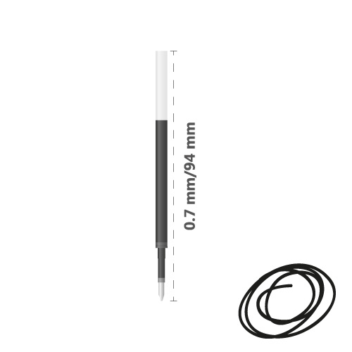 Originál gélová náplň čiernej farby do pera MILAN GEL Touch so šírkou stopy 0,7 mm. Atrament vyrobený v Japonsku zaručuje trvácnosť a kvalitu. Dĺžka: 94 mm.