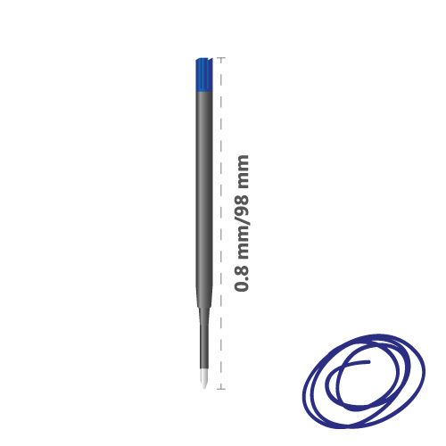 Náplň do guľôčkového pera, s priemerom guľôčky 0,8 mm. Farba modrá.