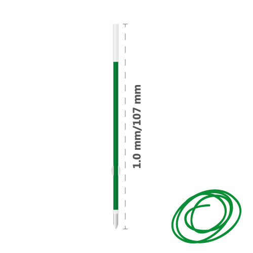 Originál guľôčková náplň zelenej farby do pera MILAN P1 touch so šírkou stopy 1,0 mm. Atrament vyrobený v nemecku zaručuje trvácnosť a kvalitu. Približná dĺžka stopy, ktorá sa dá dosiahnuť je 1200m. Dĺžka: 107 mm.