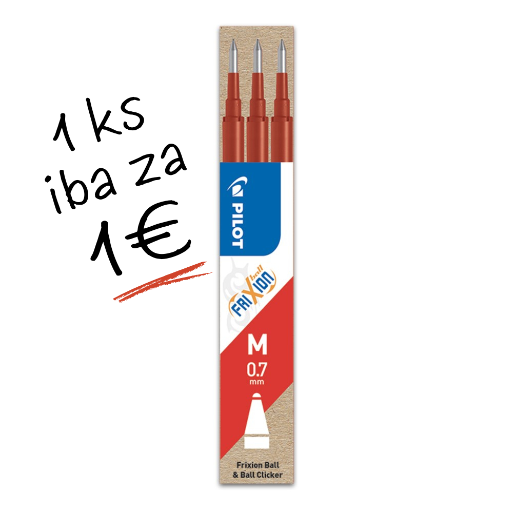 Náplň Pilot Frixion – červená. Šírka stopy: 0,5 mm. Cena za 1 ks! V balení 3 ks.