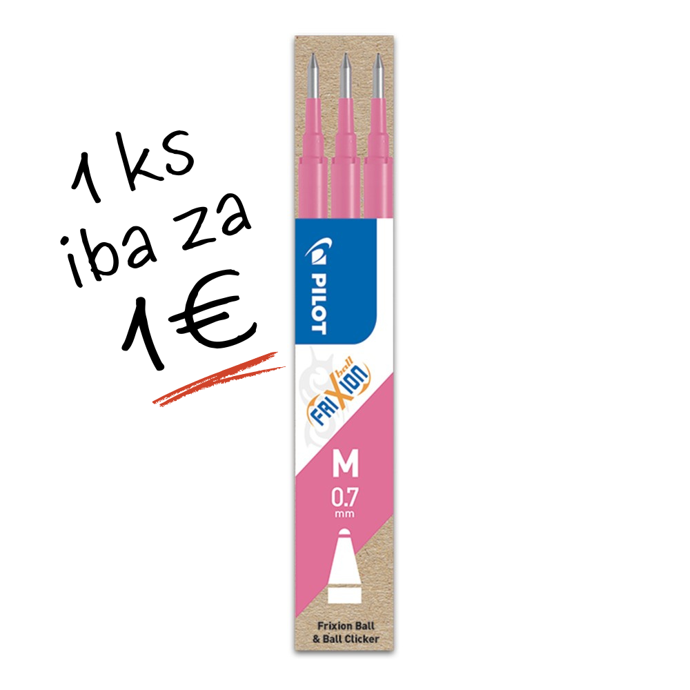 Náplň Pilot Frixion – ružová. Šírka stopy: 0,7 mm. Cena za 1 ks! V balení 3 ks.