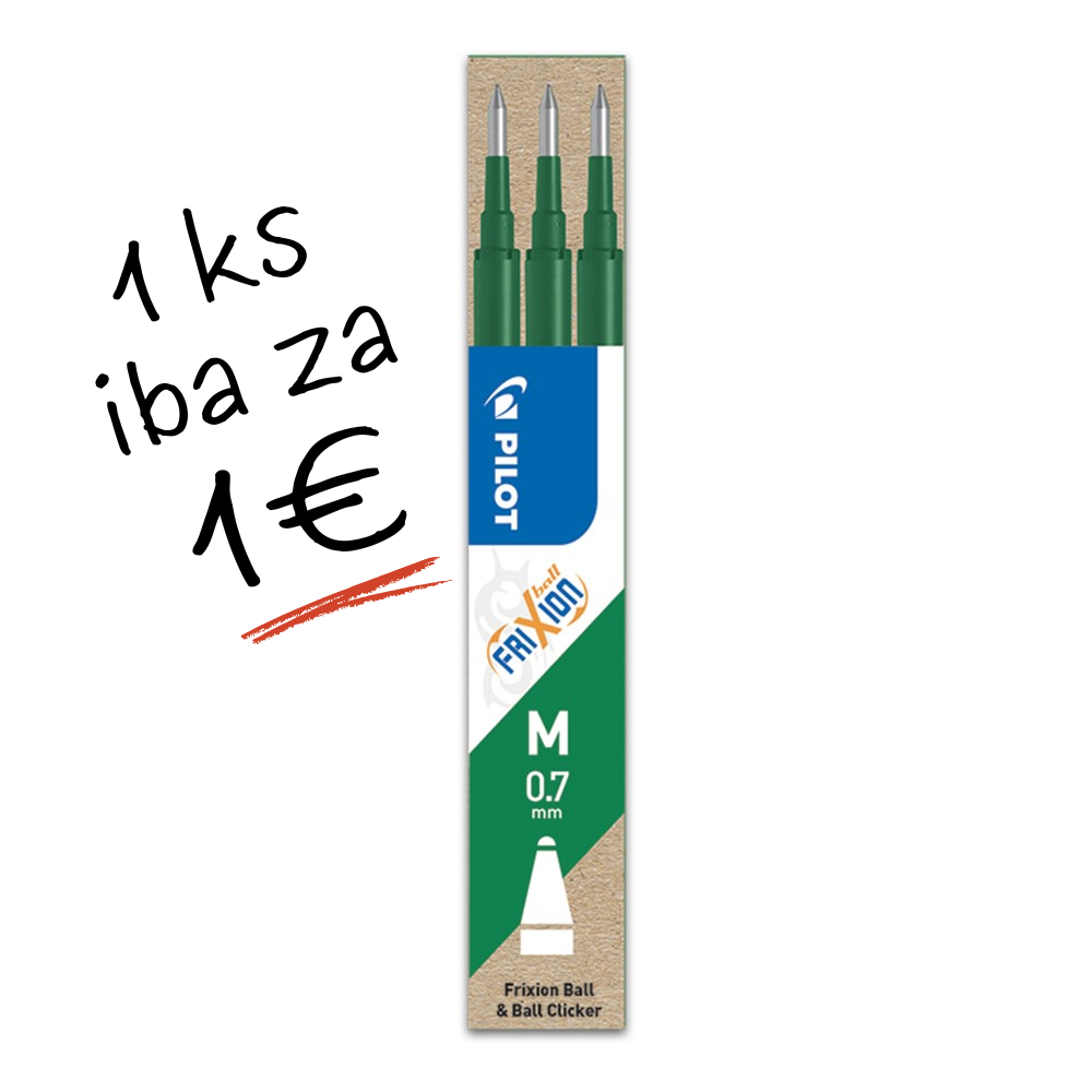 Náplň Pilot Frixion – zelená. Šírka stopy: 0,7 mm. Cena za 1 ks! V balení 3 ks.