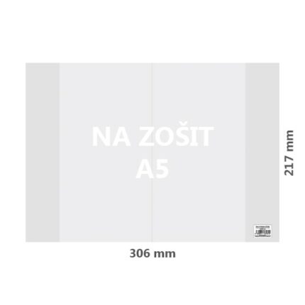 Transparentný obal na zošit A5 , zo silného PP. Hrúbka 110 mic. S hladkou štruktúrou. Rozmer 215x305mm.