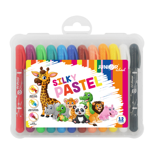 Olejové pastelky pre tých najmenších výtvarníkov. Pastelky majú otočný mechanizmus a dobre sa nanášajú. Vďaka mäkšiemu zloženiu majú krásne žiarivé farby a dobrú kryciu schopnosť.
