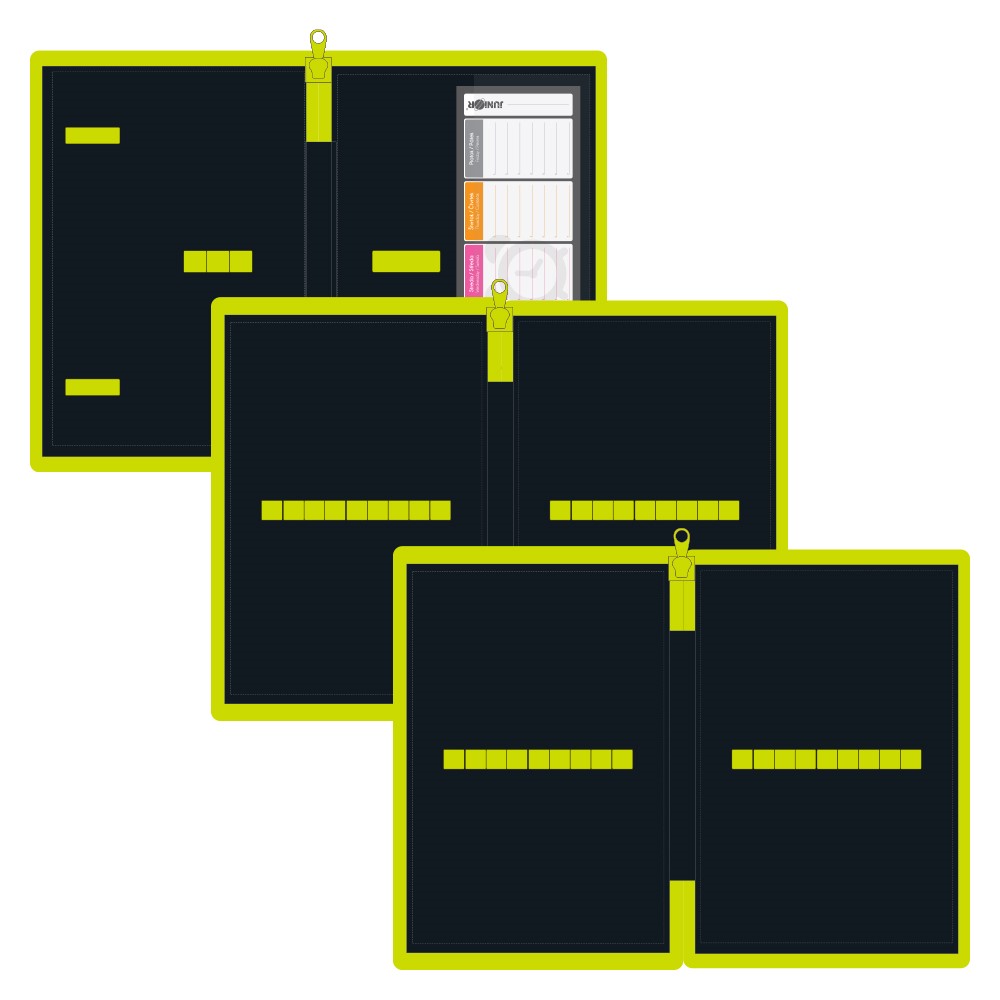 Naplnený, 1-poschodový peračník JUNIOR s rozvrhom hodín a malou násobilkou.