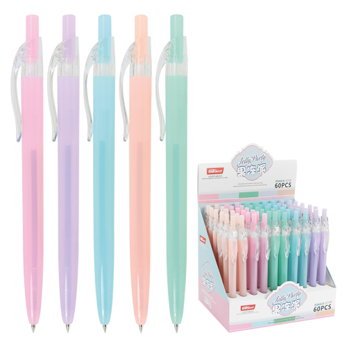 Guľôčkové plastové pero v pastelových farbách s modrou náplňou. O príjemný pocit z písania sa stará 0,5 mm hrubá modrá náplň.