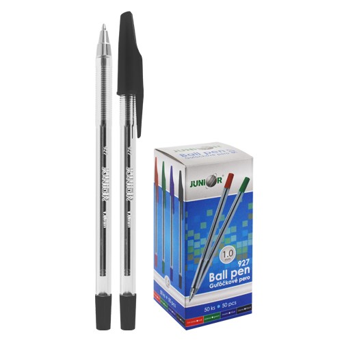 Jednorazové guličkové pero s transparentným čírym telom, so zakončením a uzáverom vo farbe náplne.