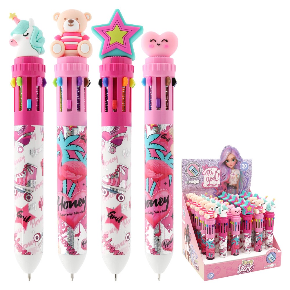 Domov Škola Písacie potreby Perá Guľôčkové Pero guľôčkové 10-farebné JUNIOR Honey Girl