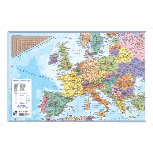 Podložka na stôl s mapou Európy, rozmer 60 x 40 cm, hrúbka 2 mm.