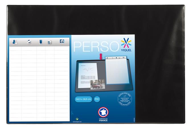Podložka na stôl v čierne farbe s priehľadným vreckom. Rozmer 39,5 x 59,5 cm.