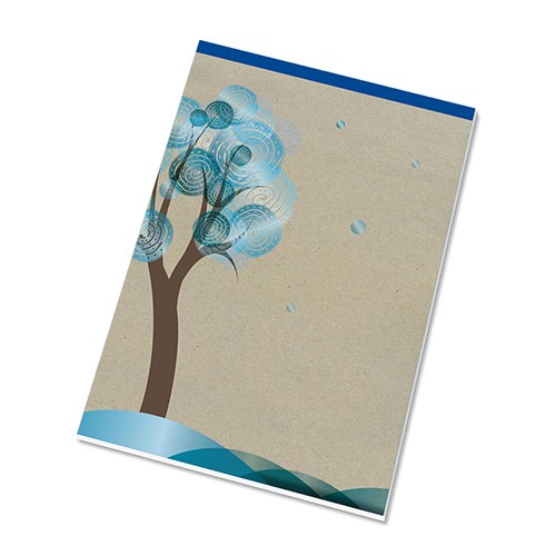 Šité 50 listové poznámkové bloky sú v kratšej strane pre vyššiu odolnosť zosilnené farebnou lemovkou. Listy z kvalitného recyklovaného papiera sú pre ľahšie a presné vytrhnutie perforované. V hlave zosilnené farebnou lemovkou.