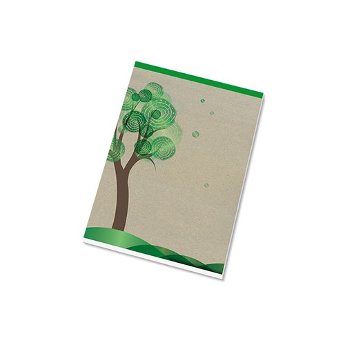 Šité 50 listové poznámkové bloky sú v kratšej strane pre vyššiu odolnosť zosilnené farebnou lemovkou. Listy z kvalitného recyklovaného papiera sú pre ľahšie a presné vytrhnutie perforované. V hlave zosilnené farebnou lemovkou.