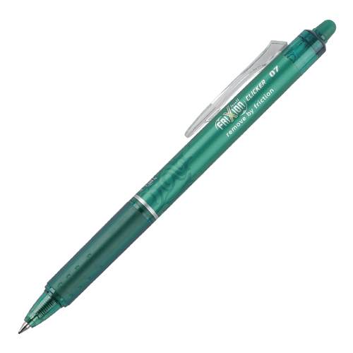 Farba: zelená / 0,7 mm. Klikni! Napíš! Vymaž! Prepíš! Prepisovateľný roller Frixion Clicker. Jedinečný výrobok v prevedení bez vrchnáku. Stačí kliknúť a písať! Špeciálny atrament – napísaný text je možné vymazať a znovu prepísať na tom istom mieste toľkokrát, koľkokrát chcete. Text zneviditeľníte zahriatím na 65 ° C, ktoré vznikne trením („gumovaním“) plastového zakončenia rolleru na papieri. Znovu sa objaví pri teplote nižšej ako -15 ° C. Pero má vymeniteľnú náplň. Nepoužívajte na oficiálne dokumenty.