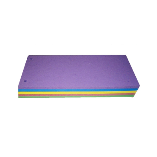 Úzke kartónové rozraďovače s dierovaním umožňujú logicky rozradiť vaše dokumety v poradači alebo rýchloviazači. Balenie obsahuje 100 ks (5 farieb / 20 ks). Rozmer: 100 x 240 mm