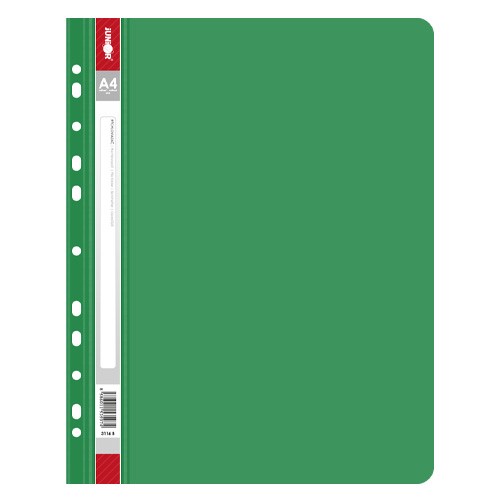 Plastový rýchloviazač s europerforáciou, vhodný na dokumenty formátu A4, s priehľadnou prednou stranou.
