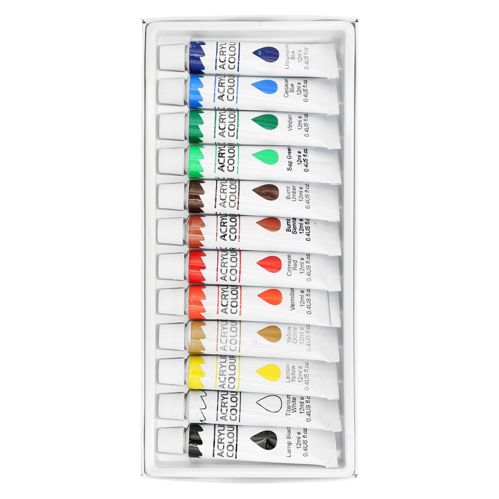 Akrylové farby v jasných odtieňoch, riediteľné vodou, s dobrou krycou schopnosťou. Farby možno aplikovať na všetky bežné podklady ako je papier, lepenka, plátno. Sada obsahuje 12 farebných odtieňov v tubách o objeme 12ml, uložených v papierovej krabičke. Kvalitné, cenovo dostupné farby, ktoré firma JUNIOR ponúka pod vlastnou značkou. Rozmer balenia: 10,5×25 cm.