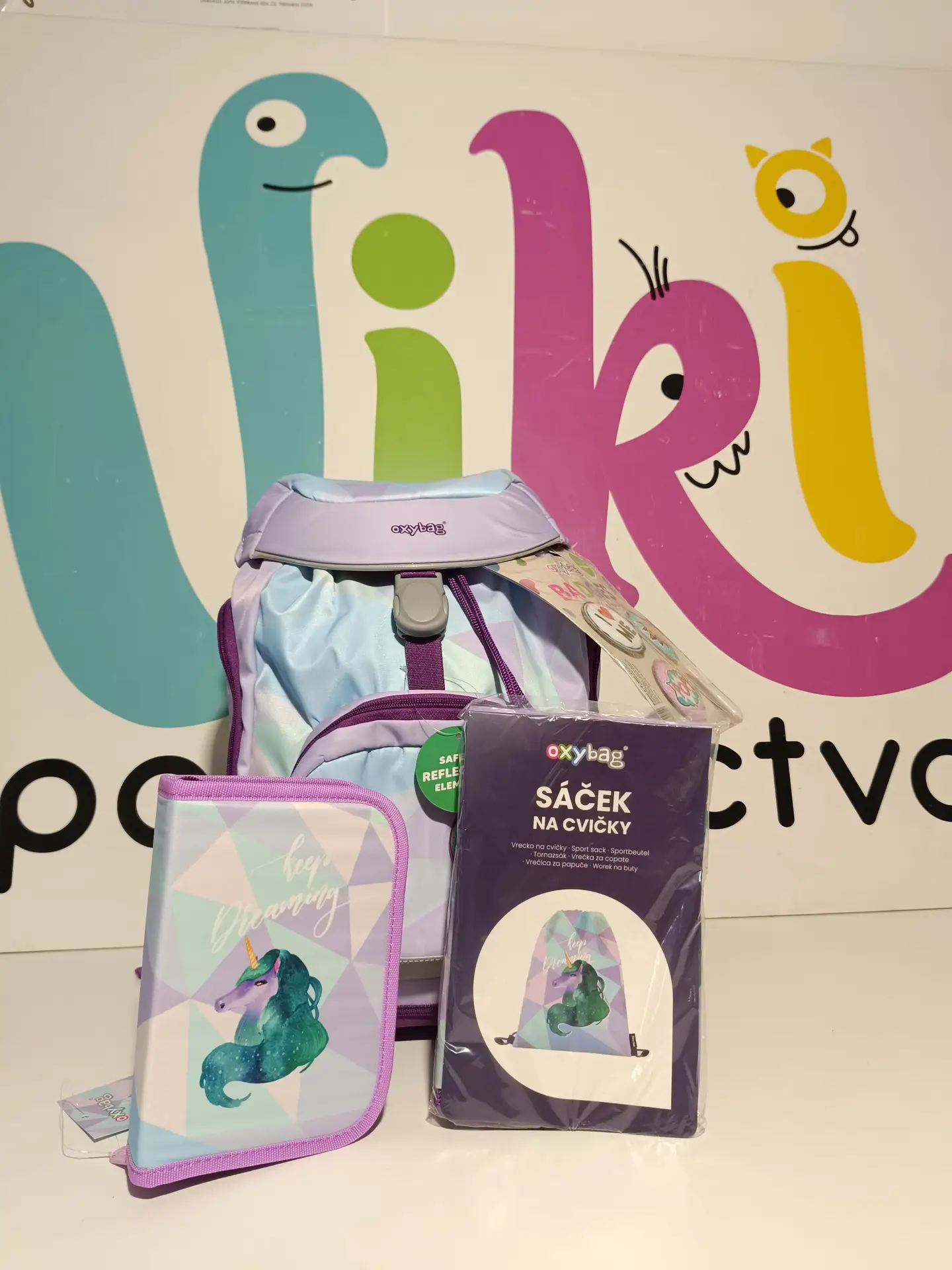 Výhodný set batohu, peračníka, vrecka na cvičky a vymeniteľných odznakov, vhodný od 1. – 3. triedy.
