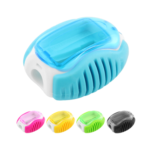 Strúhadlo s malým zásobníkom , vyrobené z kvalitného PVC ergonomického tvaru, s oceľovým nožom na klasické ceruzky. Strúhadlo má Soft Grip úchop – mäkký pogumovaný povrch.
