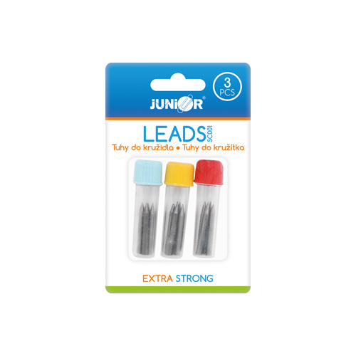 Náhradné tuhy do kružidla. Tuhy sú balené v malých plastových tubách s farebným uzáverom. Súprava obsahuje 1 tubu s 3 ks túh.