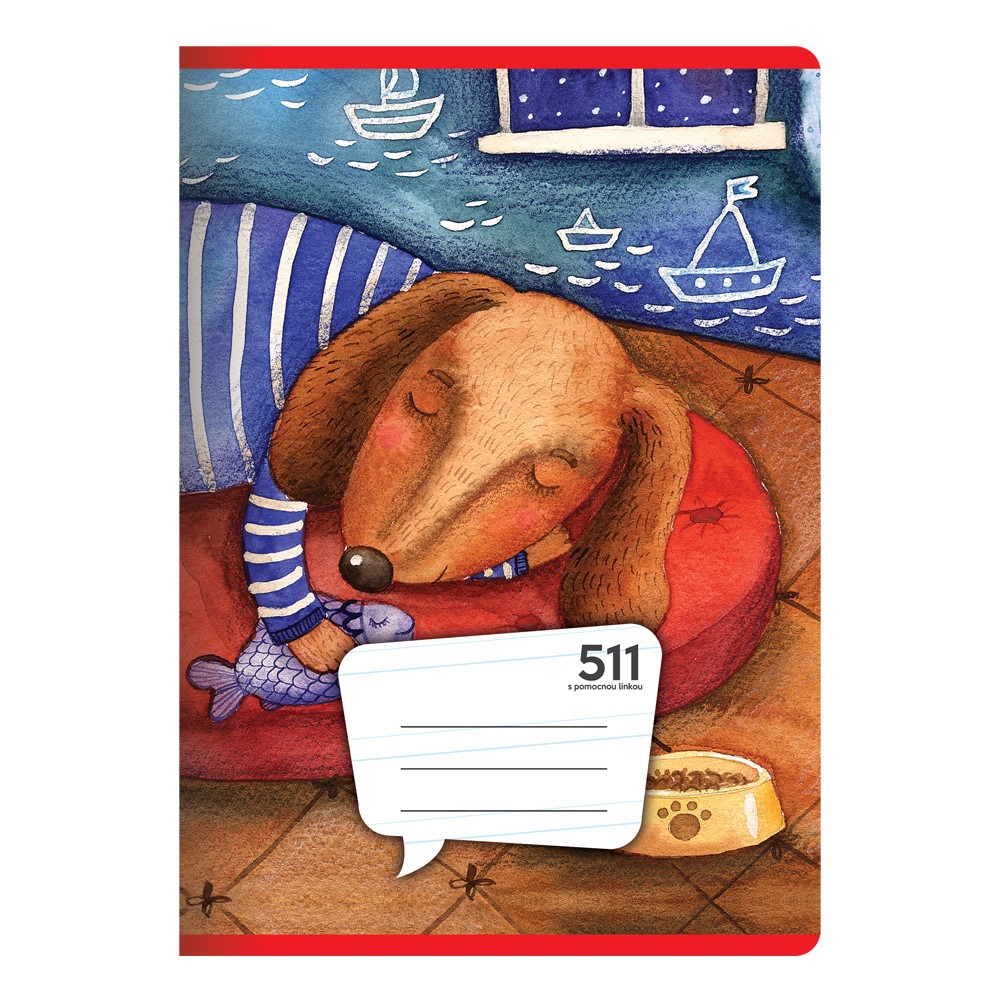 Zošit 511, A5, 10 listov, linajkový s pomocnou linkou, balenie: 20 ks, /560 ks kartón.