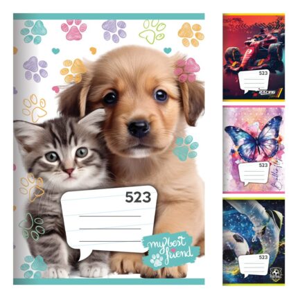10 listový zošit s 2 pomocnými linajkami pre žiakov na 1. stupni základných škôl. Formát A5. Školské zošity vyrobené z kvalitného bezdrevného zošitového papiera. Materiál: bezdrevný zošitový papier. Obálka: obojstranne natieraný ofsetový papier s pestrým detským motívom.