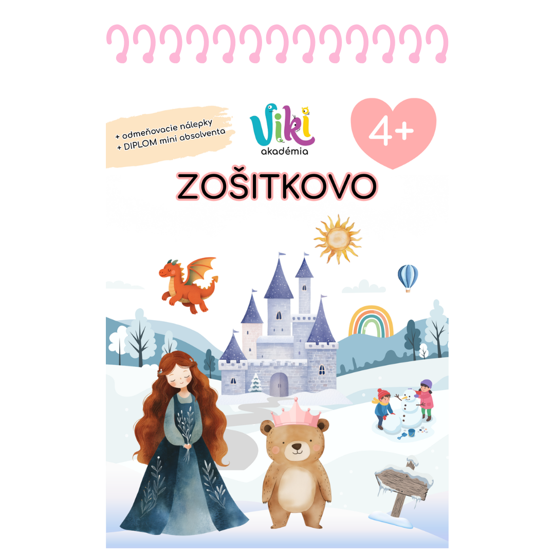 Zošitkovo 4+ je pracovný zošit pre  4 ročné deti. Vhodný pre tie deti, ktoré už túžia po školskej lavici, ale nemajú na to ešte vek.
