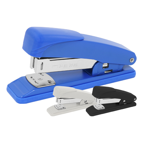Zošívačka kovová v kombinácii s plastom. Výkon max 20 listov. Vhodná náplň veľkosti 24/6, 26/6, dodávaná v troch farebných prevedeniach. Materiál: kov + plast.